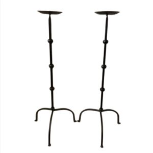 secondhand 70cm Pair of Medieval-style Tall Hand Forged Iron Candlestick Holders